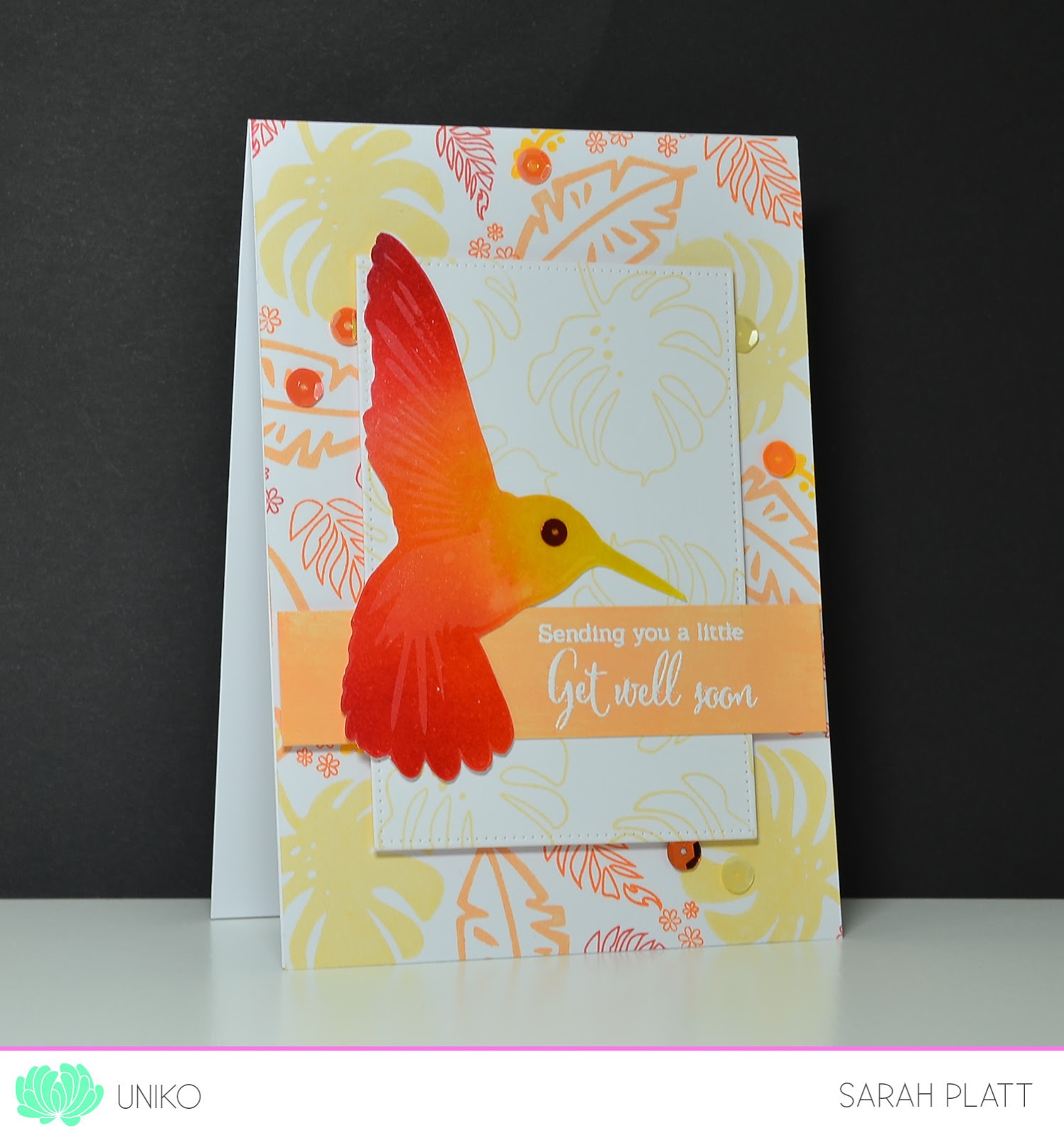 die-cut sentiment from Hero Arts. to finish some sequins from Lucy's Little Things.