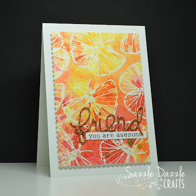 I've popped the Brusho panel and die-cut overlay onto fun foam for some