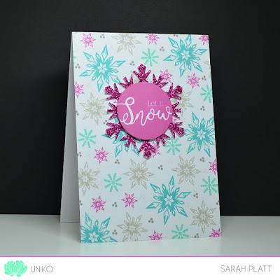 set (released last year) mounted on fun foam against a die-cut snowflake also by Uniko.
